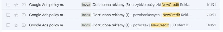 Przez podobieństwo do netcredit.pl – wtedy była to chwilówka, teraz droga karta „kredytowa” pozabankowa. Skoro algorytmy Google z góry odrzucały mi newcredit.pl to nie było sensu z tym nic robić. Trigery phishingowe odpaliły się widocznie. Inne słowo ale wg algorytmów na tyle podobne, że w branży YMYL to nie przeszło.
