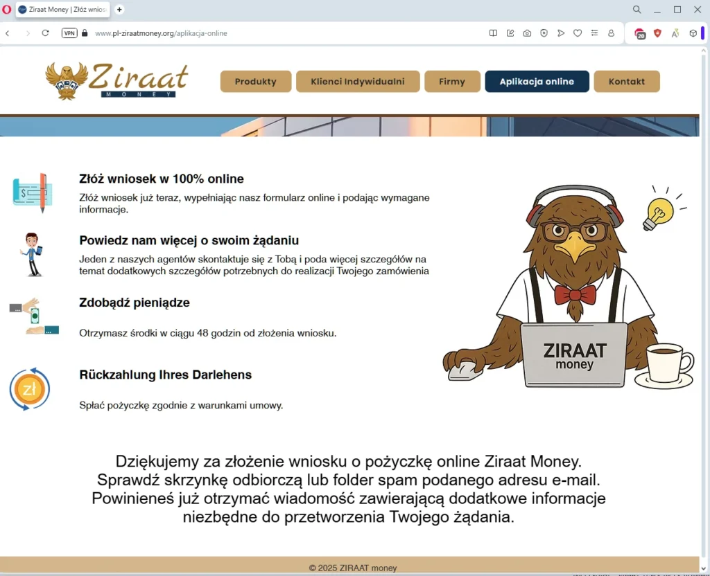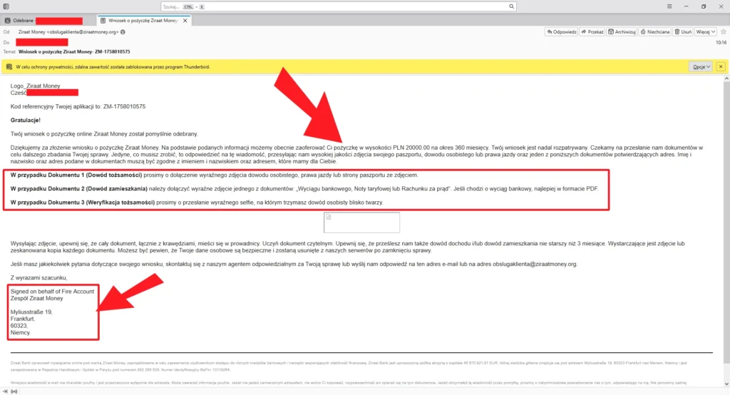Także chyba rozumiecie już, że żadnej pożyczki nie będzie. Używają nazwy prawdziwego banku Ziraat (transfery pieniężne) do pozyskiwania pod pozorem pożyczek 24/7 danych potrzebnych do przeprowadzania KYC – czyli w skrócie do weryfikacji konta np. na giełdzie kryptowalut – rozumiecie… byście mieli konta używane do nielegalnych działań i sporo problemów z tym związanych.